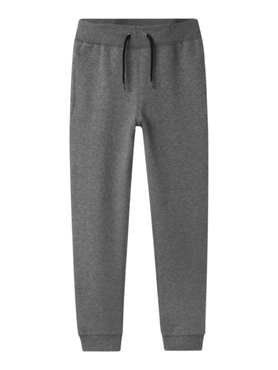 Name it lasten meleeratun harmaan collegehousut. Housuissa harjattu sisäpinta ja vyötäröllä napinläpikiristys.