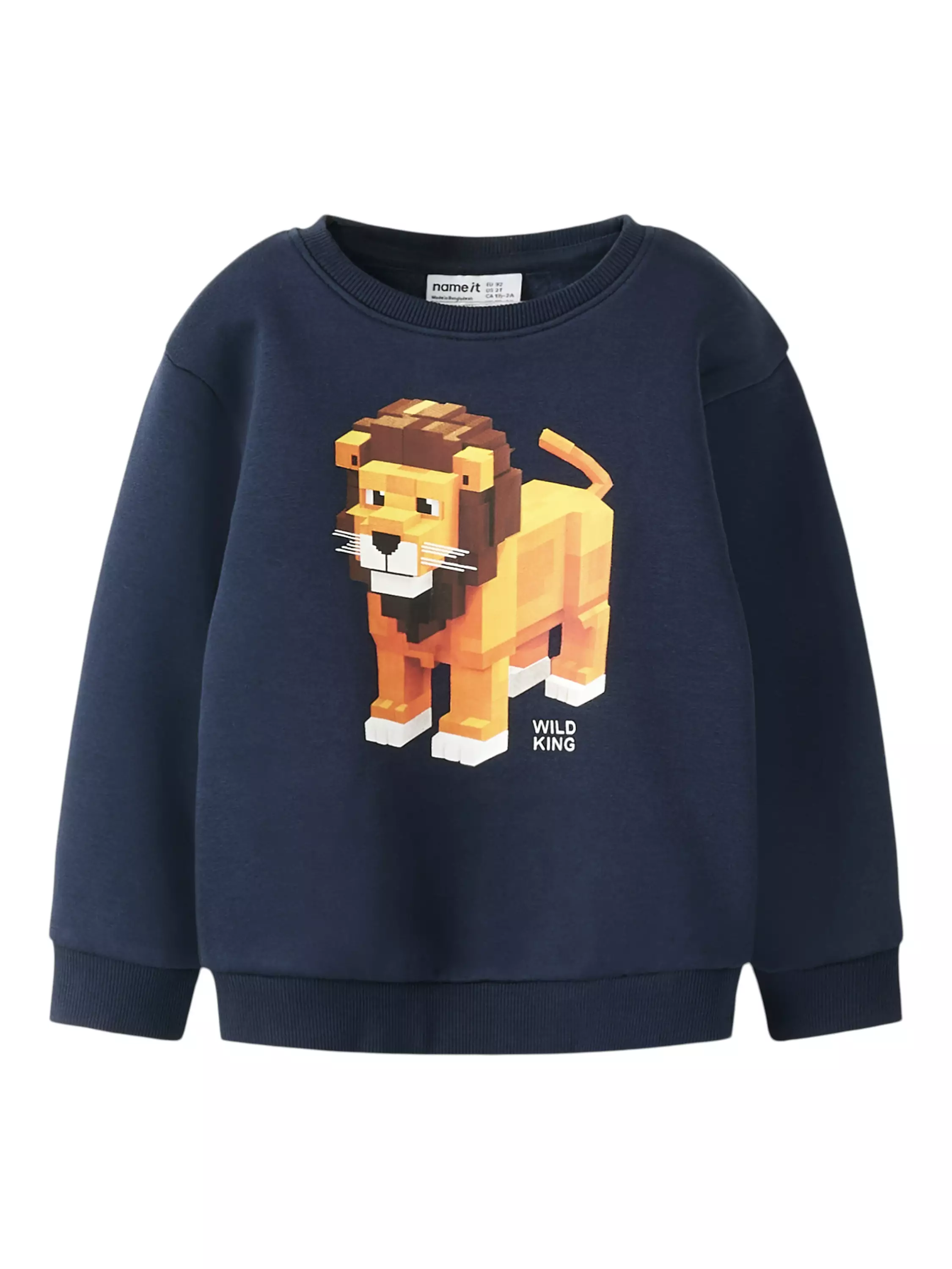 Name it lasten collegepaita, edessä leijona painatus. 70% Cotton - Organic, 30% Polyester - Recycled