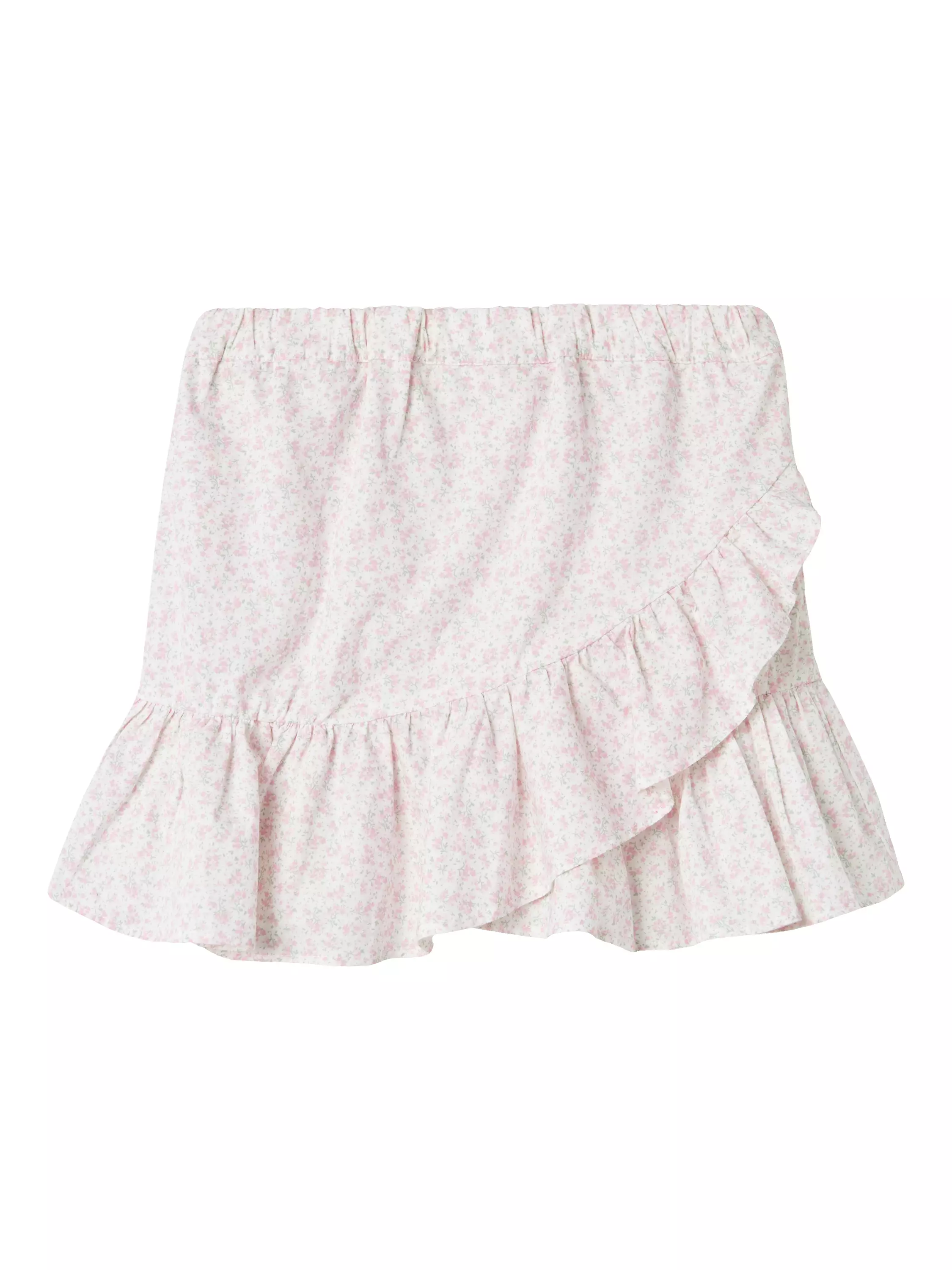 Name it lasten kesäinen hame, helmassa frilla. Vaaleanpunainen herkkä kukkakuosi.