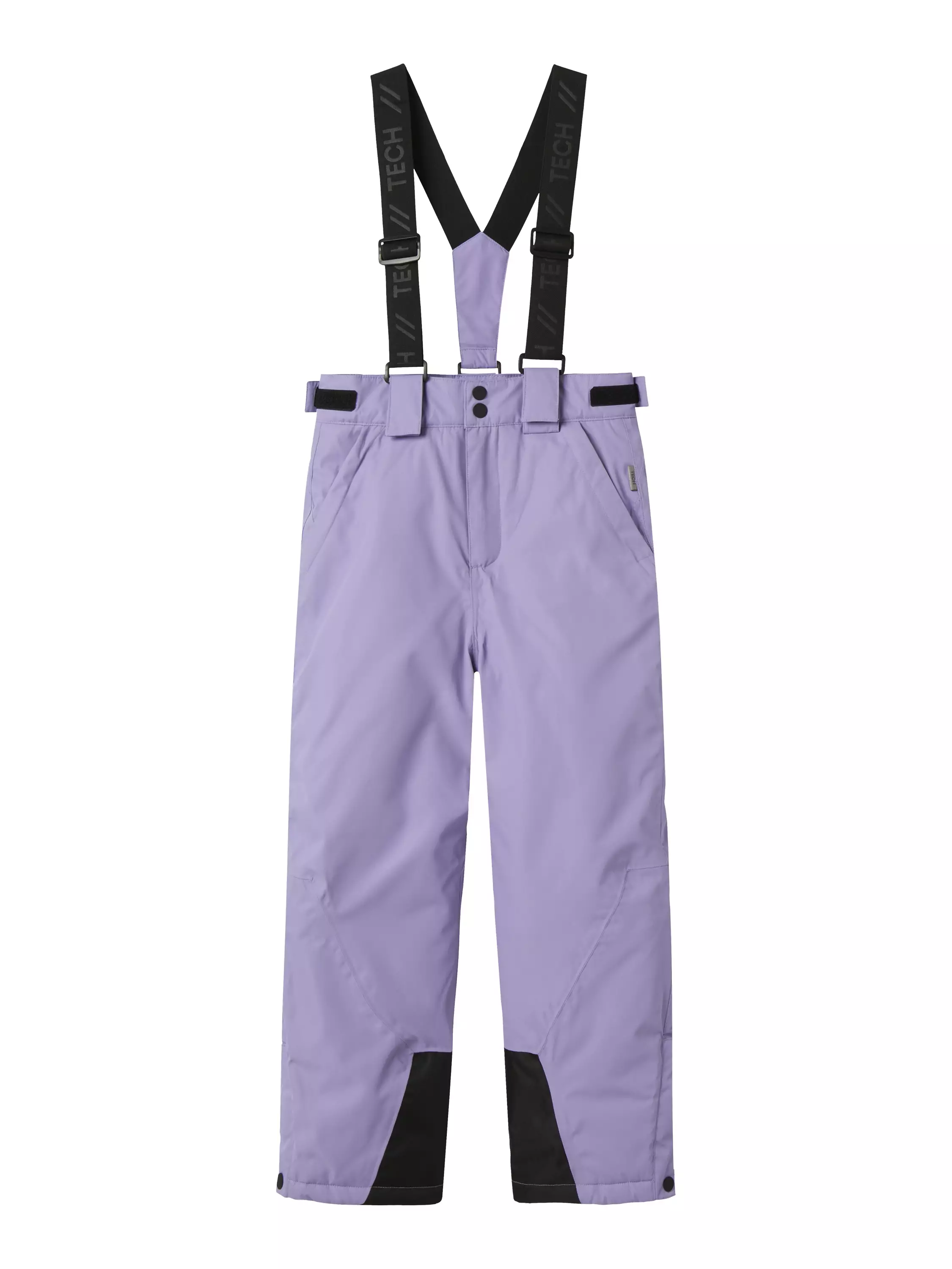 Name it lasten toppahousut/lasketteluhousut. Housuissa vetoketjutaskut, lumilukot lahkeissa sekä irroitetavat henkselit. Vyötäröllä tarranauhakiristys.