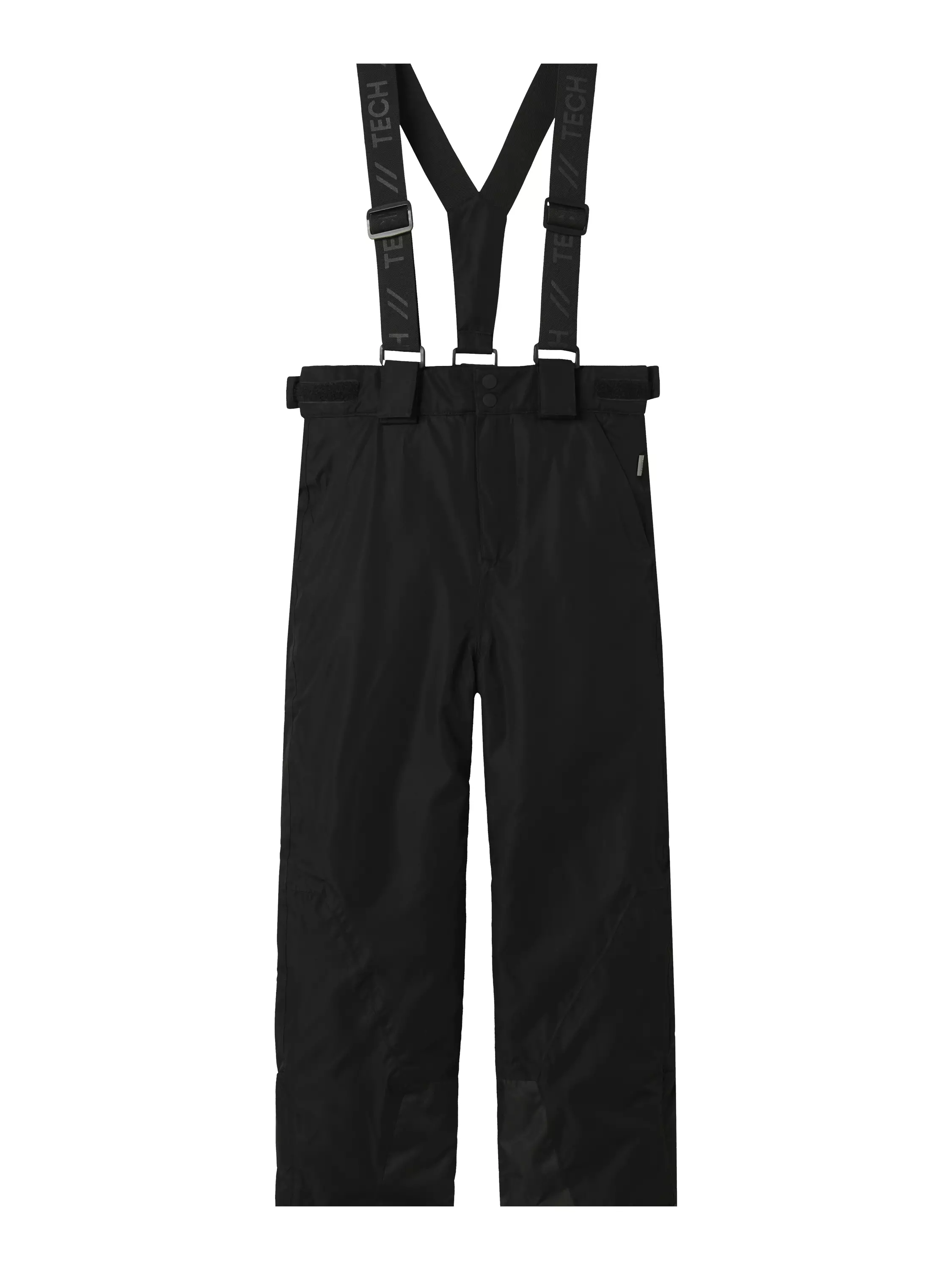 Name it lasten toppahousut/lasketteluhousut. Housuissa vetoketjutaskut, lumilukot lahkeissa sekä irroitetavat henkselit. Vyötäröllä tarranauhakiristys.