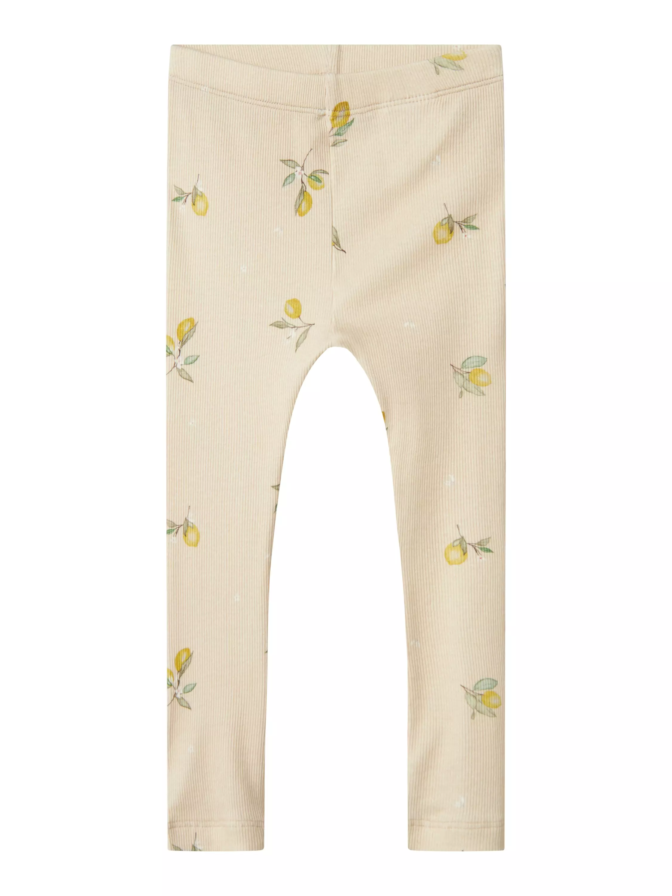 Name it lasten sitruunakuosiset legginsit. 57% cotton, 38% lyocell, 5% elastane