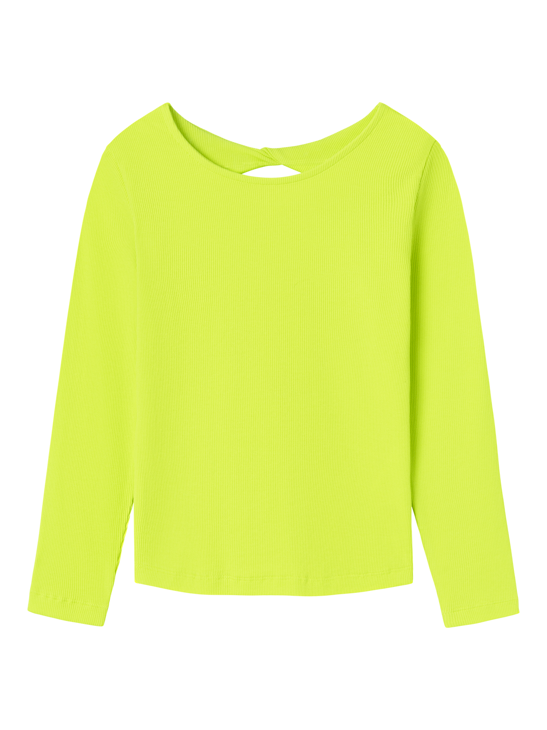Lasten pitkähihainen paita rib neulosta. Niskassa "solmuke" kauniina yksityiskohtana.