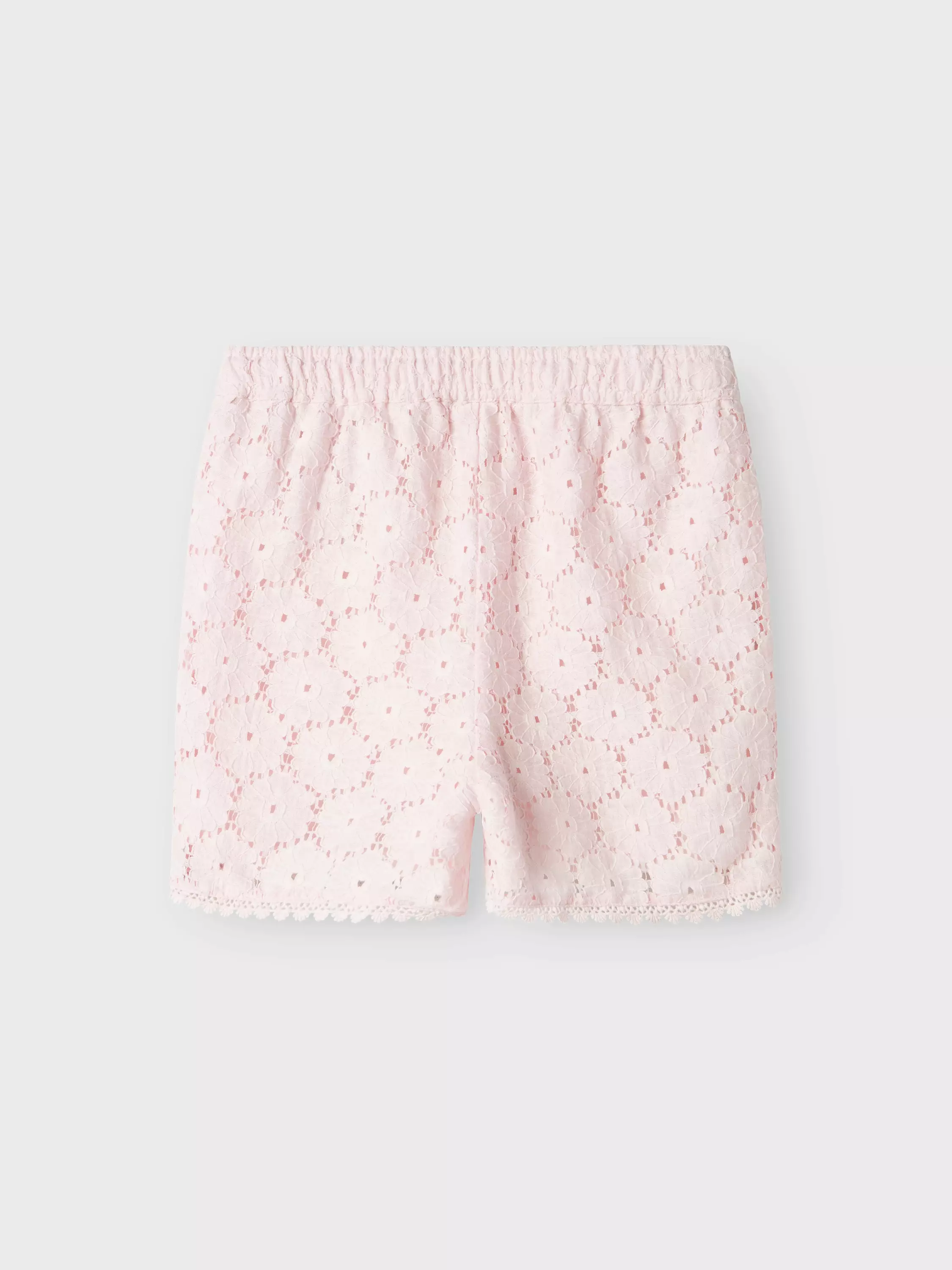 Kauniit pitsikankaiset shortsit, joissa ns. "alusshortsit" ohutta kangasta. Materiaali: 70% puuvilla, 30% nylon. Alusshortsit: 100% polyester. Yhdistä shortsit saman sarjan t-paidan kanssa.