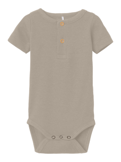 Name Itin lyhythihainen ribbibody söpöillä vaarinpaita-tyylisillä koristenapeilla. 57% luomupuuvillaa, 38% modaalia, 5% elastaania