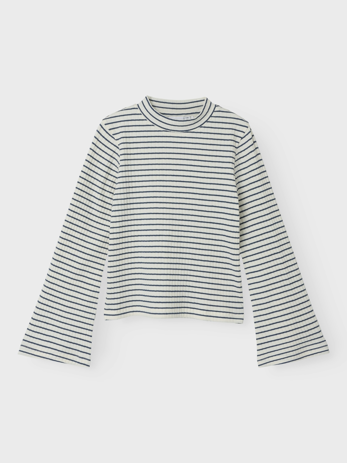 Lasten ihanan pehmeä sini-valkoraidallinen pitkähihainen trikoopaita hauskoilla levenevillä hihoilla!