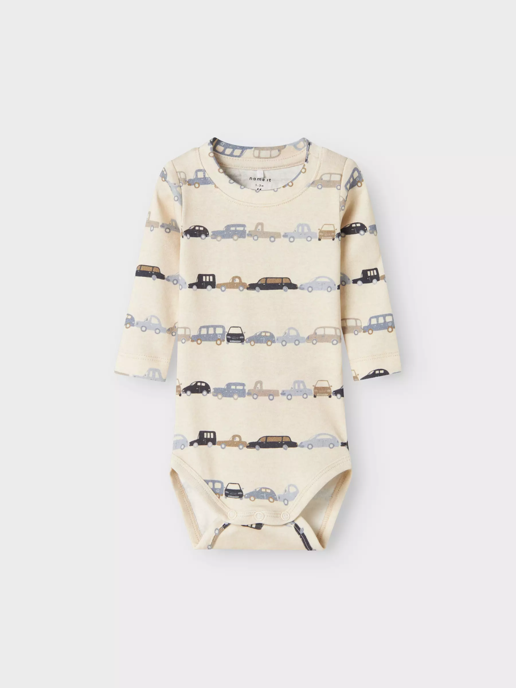 Name it vauvan pehmeä autokuvioitu body. Luomupuuvilla 57%, Lyocell tencel 38%, elastaani 5%