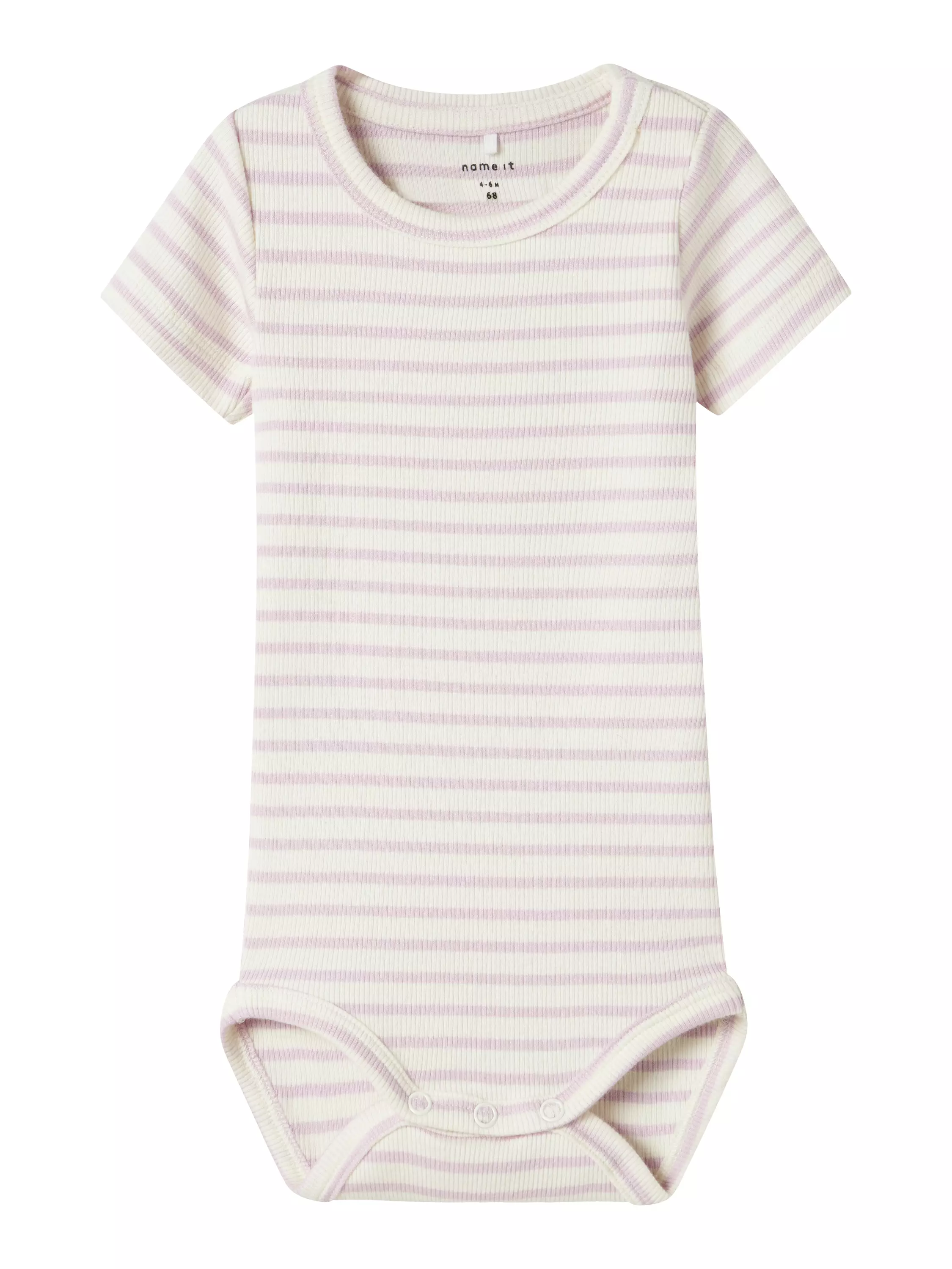 Name it vauvan lyhythihainen raidallinen rib body. 57% luopmupuuvilla, 38% modaali, 5% elastaani