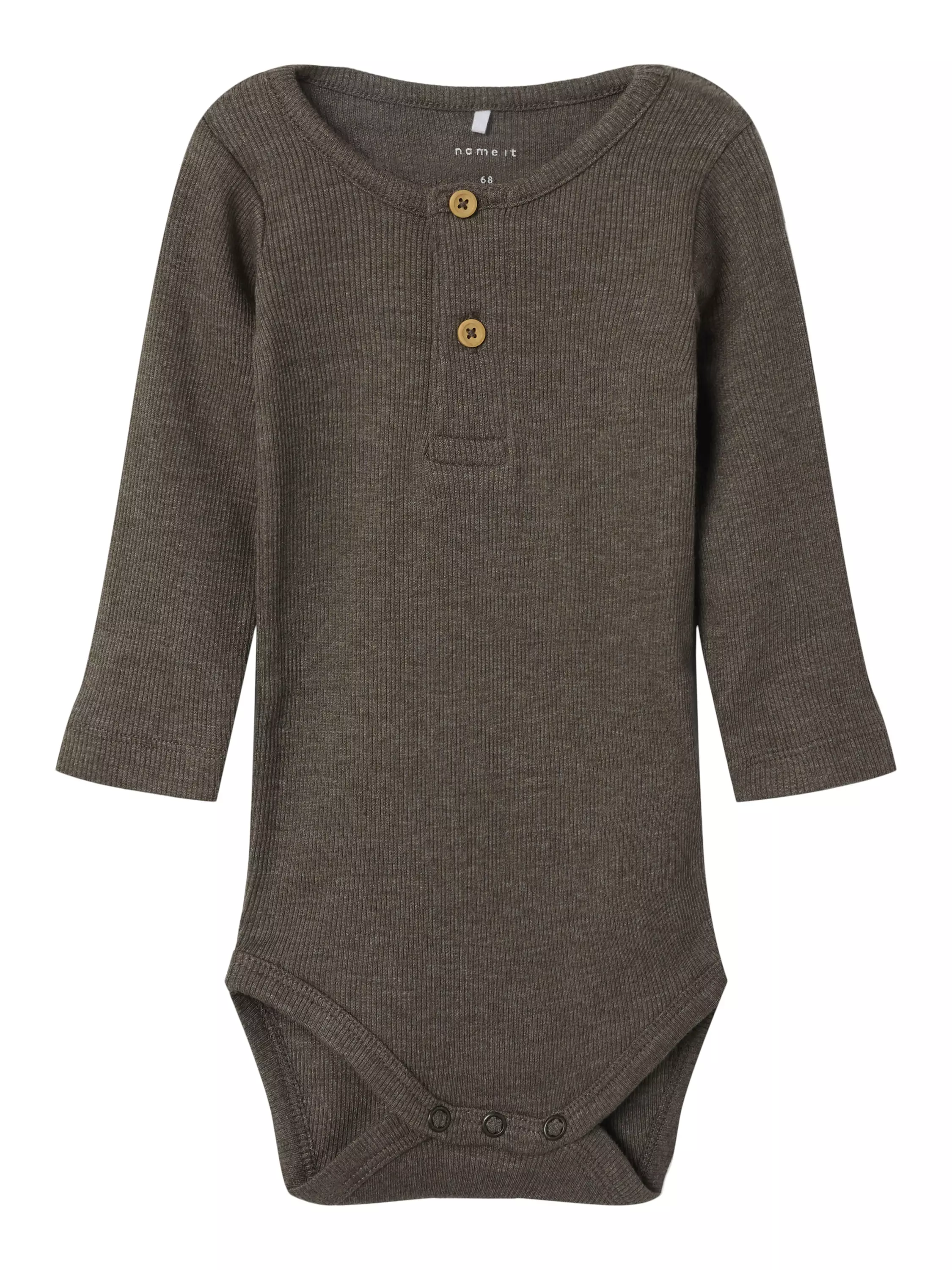 Name Itin ribbibody söpöillä vaarinpaita-tyylisillä koristenapeilla. 57% luomupuuvillaa, 38% modaalia, 5% elastaania