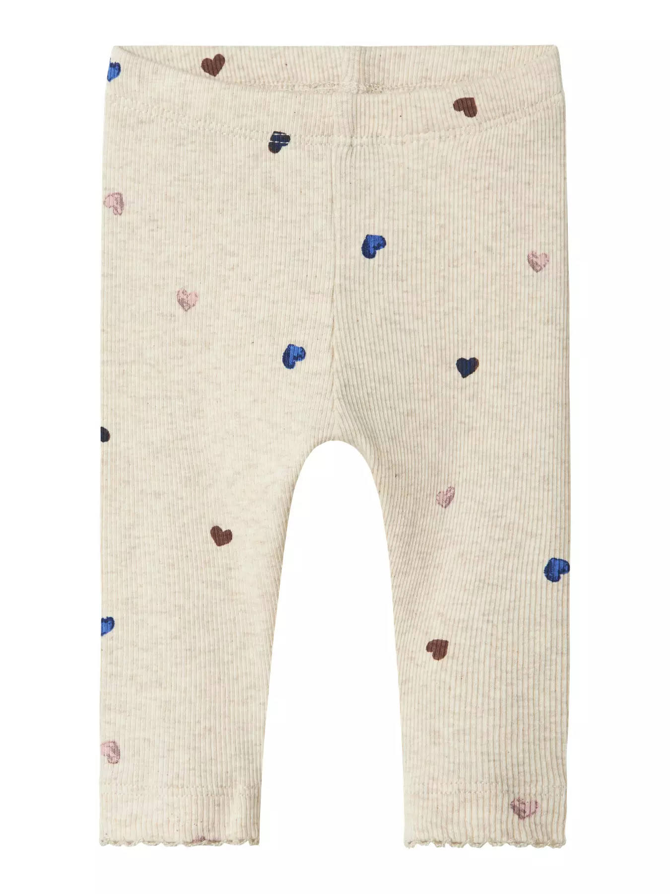 Name it vauvan rib leggingsit, sydänkuosilla. Materiaali: luomupuuvilla 95% elastaani 5%