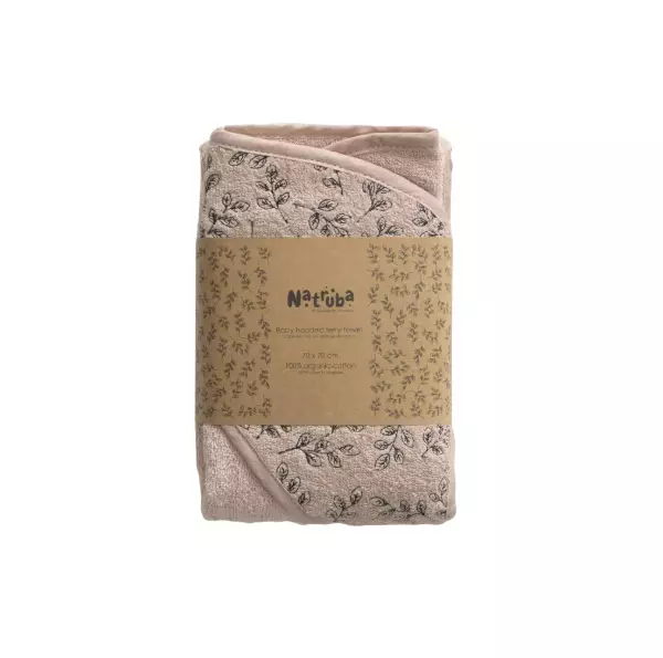 High quality 100% organic terry. Produced on a GOTS certified factory. Soft and breathable, with a great absorbency and durability. Embroided leaf pattern on hood