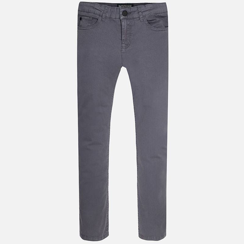Lasten siistimmät housut, normaali istuvuus, kapea lahje. Kuminauha-nappi kiristys vyötäröllä. 98% puuvillaa, 2% elastaania