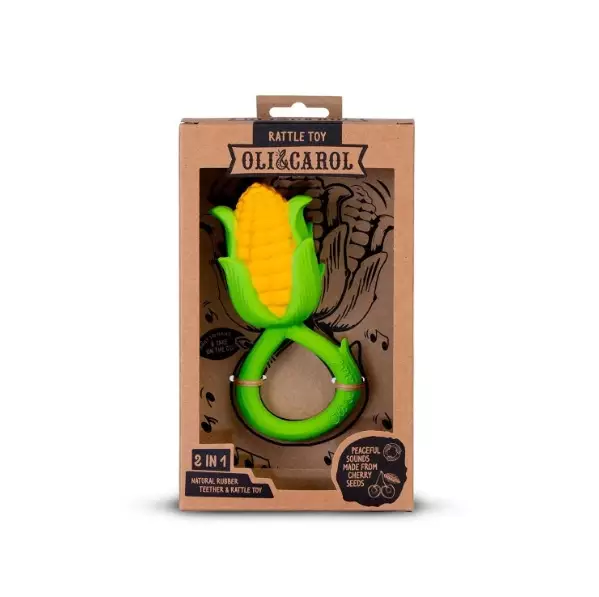 Helistimen ulkopinta on valmistettu kokonaan luonnonkumista, ja sisällä on kierrätettyjä kirsikan siemeniä, jotka muuttavat tämän 2in1-purulelun helistimeksi. Lelu on suunniteltu käsi... Lue lisää