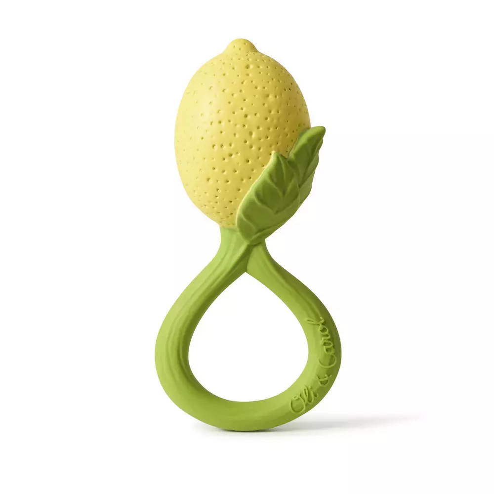 Helistimen ulkopinta on valmistettu kokonaan luonnonkumista, ja sisällä on kierrätettyjä kirsikan siemeniä, jotka muuttavat tämän 2in1-purulelun helistimeksi. Lelu on suunniteltu käsi kädessä sertifioitujen otorinolaringologien kanssa, joiden kanssa olemme pystyneet luomaan täydellisen äänenkorkeuden, joka auttaa vauvoja rauhoittumaan sen sijaan, että stimuloisi heitä liikaa.