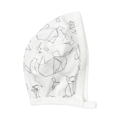 Vauvalakki suloisella eläinkuosilla. Nepparikiinnityksen avulla lakki pysyy hyvin vauvan päässä. 95% luomupuuvillaa, 5% elastaania