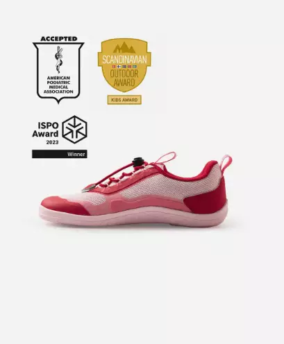 Reimatec-paljasjalkakenkä Tallustelu auttaa pitämään lapsen jalat kuivina ja tyytyväisinä. Kengän minimalistinen lesti on leveä, jotta varpailla olisi tilaa kasvaa suoraan, ja koko kenkä on täysin koroton. Näin jalan asento on parempi ja kävely sujuu luonnollisemmin. Pohja on ohut, vain 4 mm, ja taipuisa, joten se antaa paremman tuntuman maahan ja aktivoi jalan lihaksia. Kengässä on mukavat, irrotettavat pohjalliset ja helpot joustonauhat. ISPO Award- ja Scandinavian Outdoor Award -palkinnot vuonna 2023 voittanut Tallustelu-kenkä on erinomainen valinta - tämä lasten kevyt paljasjalkakenkä on vaihtelevassa säässä kuin kotonaan.