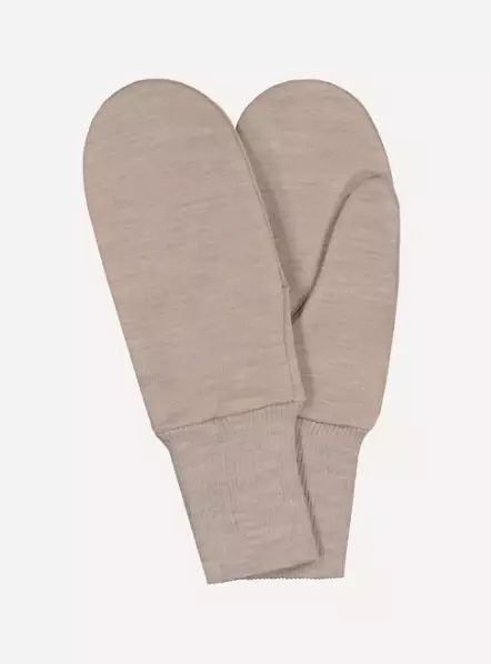 Lämpimät lapaset valmistetaan 100 % luomumerinovillasta. Lapasosa on kaksinkertaista sileää interlock-neulosta ja ranneke ribbineulosta, joka pitää lapasen hyvin paikallaan ja helpottaa pukemista. Hiekan sävyiset merinolapaset sopivat käytettäväksi sellaisenaan tai tuomaan lisälämpöä toisten käsineiden alla.