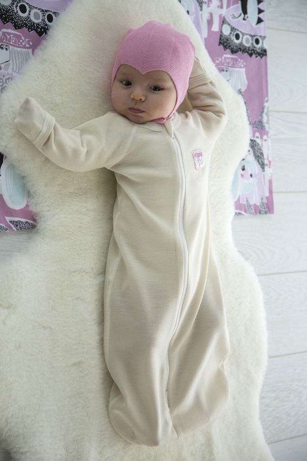 Villa tukee vauvan unta ja kehittyvää lämmönsäätelyä – se lämmittää, mutta ei hiosta. Luomumerinovillainen unipussi rauhoittaa unia, kun vauva ei herää peiton puuttumisesta johtuvaan paleluun.