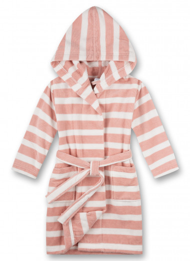 Sanetta lasten pehmeä hupullinen kylpytakki, jossa vaaleanpunaiset ja valkoiset raidat Materiaali: 90% puuvillaa, 10% polyesteria