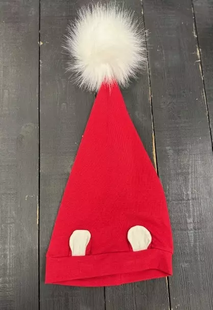 Tampereella valmistettu tonttulakki nallenkorvilla. Materiaali 95% luomupuuvillaa, 5% elastaania.