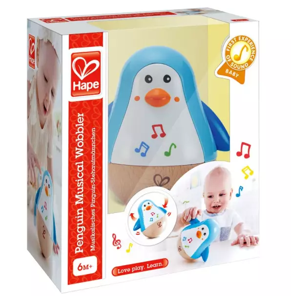 Puinen pingviini ilahduttaa lasta kauniilla äänellään. Pingviinin vaappuessa siitä kuuluu hentoinen ääni. Pienet siivet ovat liikuteltavissa. Tuotteen koko: 11x9x13 cm. Paketin koko: 16x10x18 cm. Ikäsuositus: 6kk+.