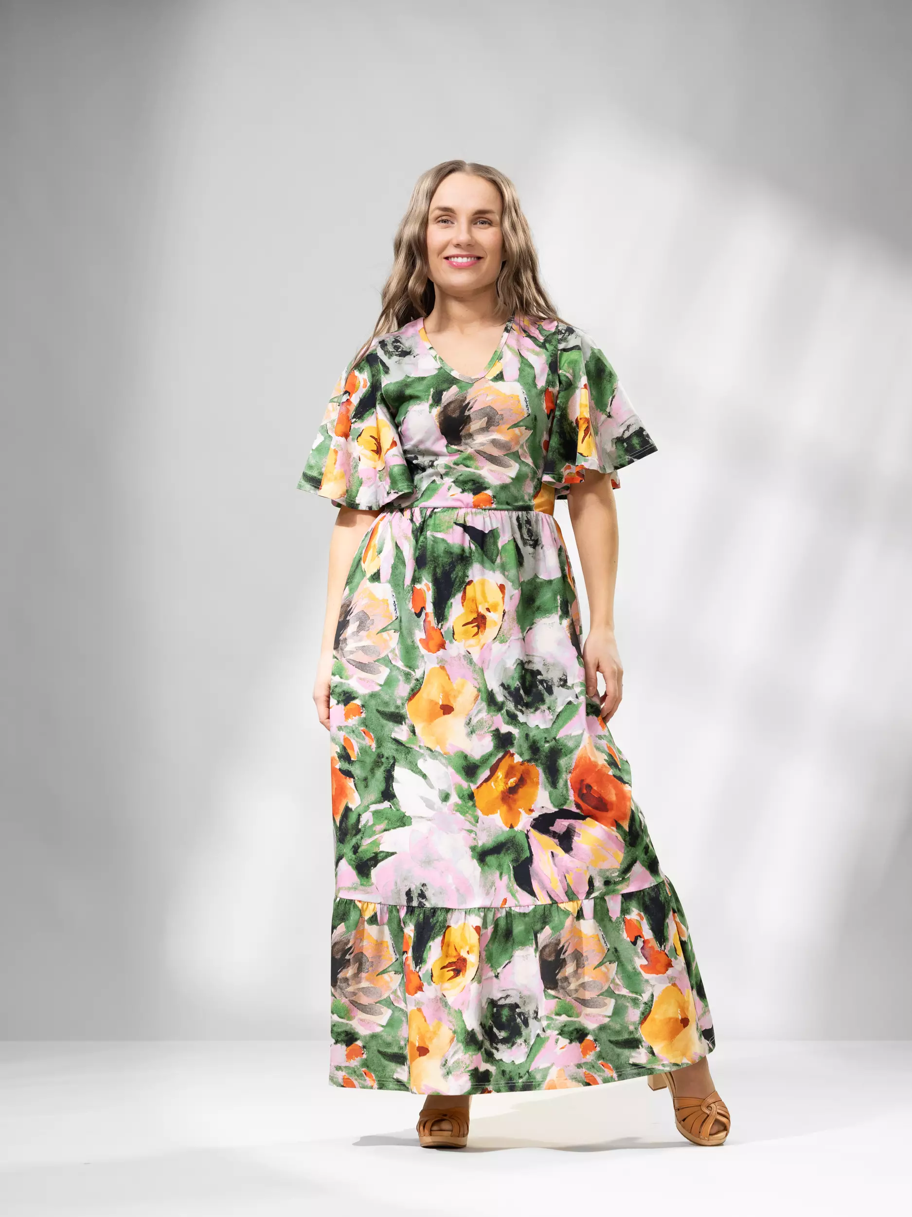Lyhythihainen SELJAmekko on upea, frillahelmainen maksimekko. Tyylikäs v-pääntie ja liehuvat perhoshihat antavat mekolle naisellisen ja elegantin ilmeen. Vyötärösaumaan ommeltu kevyt kuminauha pitää istuvuuden ryhdikkäänä. Sivusaumoissa on taskut. Tämä nilkkapituinen, persoonallinen mekko on todellinen katseenvangitsija arkeen ja juhlaan!