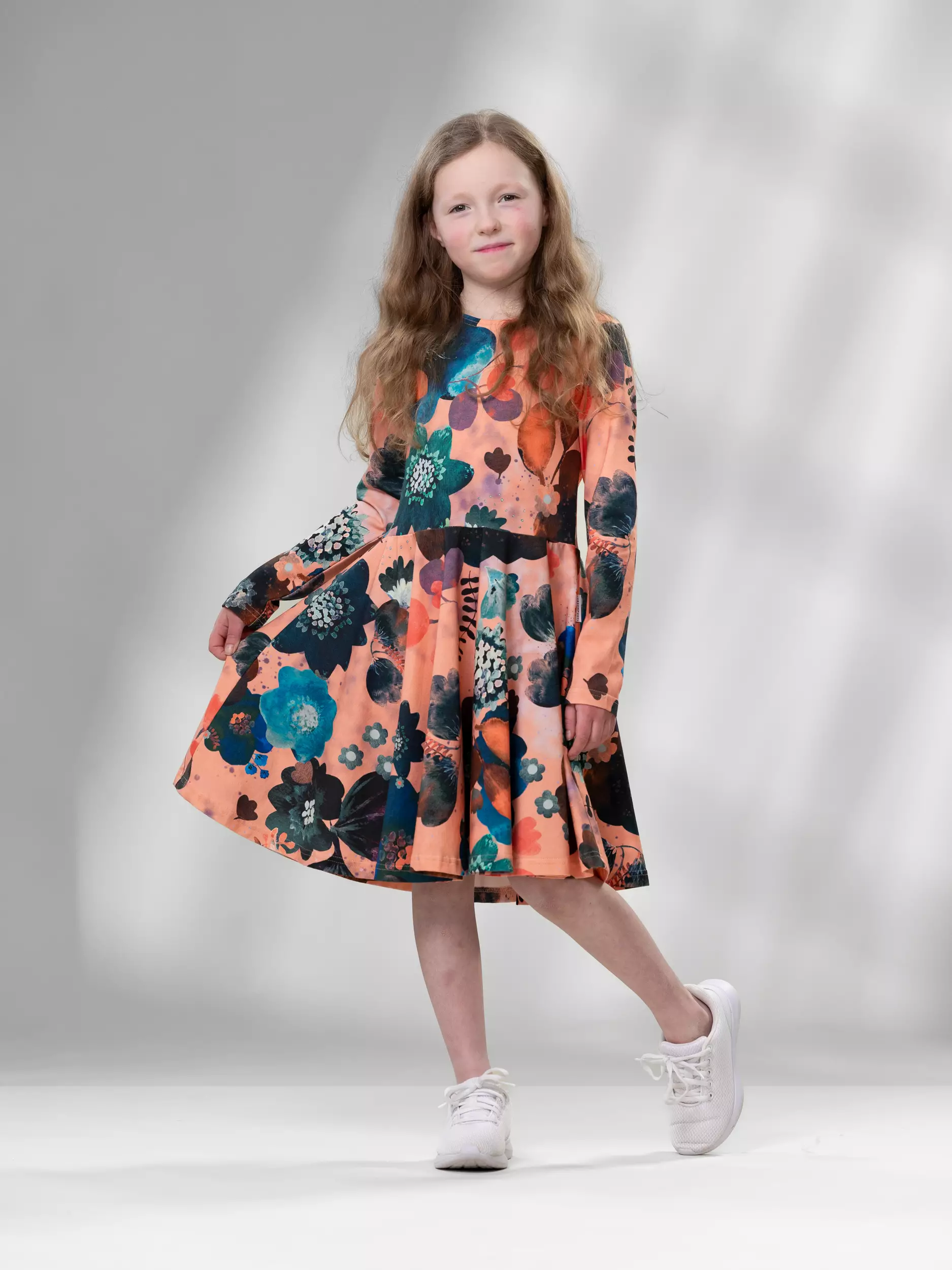 Versonpuodin ajaton klassikkomekko. Back to the fifties! Tämä ihastuttava lasten mekko on saanut inspiraationsa 50-luvun hulmuavista kellohelmoista. Siinä on hyvin istuvat hihat ja miehusta, ja upea kellohelma, joka saa lapsen pyörähtelemään riemusta. Kaunis kuosi saa hyvälle mielelle niin käyttäjänsä kuin ympärillä olevat. FIFTARImekko on suunniteltu tuomaan iloa ja väriä päivään, ja se sopii täydellisesti sekä arkeen että juhlaan. Annetaan lapsen loistaa tässä tyylikkäässä ja kauniissa mekossa!